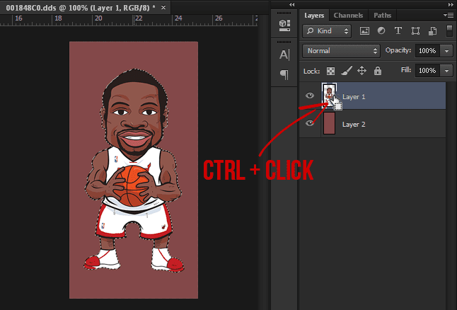 3. After exporting the file, open it in Adobe Photoshop. Create a new layer and add the image of your choice. In my case, I will use the cartoon version of Dwyane Wade which will appear in the middle of the startup screen. Create a new layer for the background and delete the original layer. You should now come up with 2 layers.